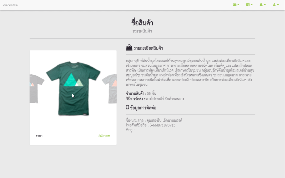 ออกแบบ UI หน้าสถิติ ข้อมูลโฮมสเตย์ และข้อมูลสินค้า ของเว็บไซต์ แบ่งปั๋น - ผลงานจากการเข้าร่วมค่าย THNG (THAILAND NETWORKING GROUP) ครั้งที่ 6